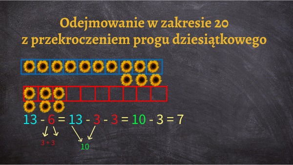 Odejmowanie w zakresie 20 z przekroczeniem progu dziesiątkowego.