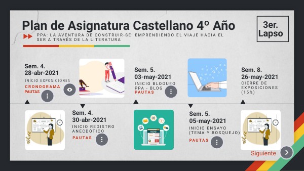 Resumen cronológico de actividades y pautas a desarrollar durante el 3er. Lapso de la asignatura de Castellano de 4º Año del Colegio Cristo Rey de Altamira