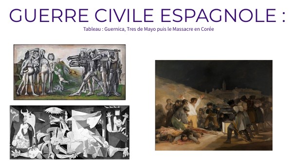 Tableau : Guernica, Tres de Mayo puis le Massacre en Corée