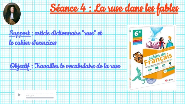 Support : article dictionnaire "ruse" et le cahier d'exercices