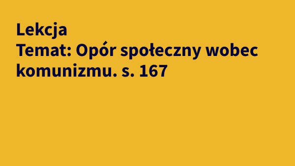 Lekcja Temat: Opór społeczny wobec komunizmu. s. 167