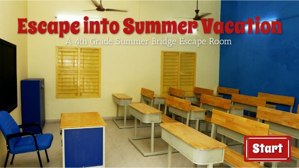 Today is the last day! You have worked really hard learning everything you could this year and are ready for Summer Vacation. But before you can begin 26 days of rest and relaxation you will need to escape from the school. There are clues hidden in each of the classrooms. Your job will be to find each clue, and answer it correctly before searching for the next clue. GOOD LUCK!