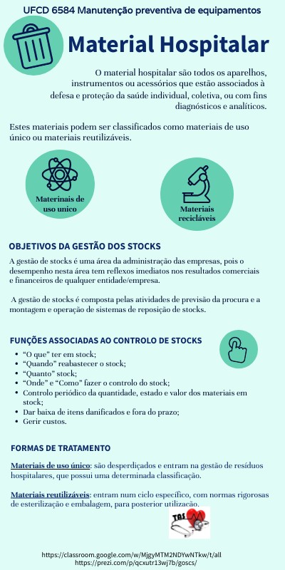 O material hospitalar são todos os aparelhos, instrumentos ou acessórios que estão associados à