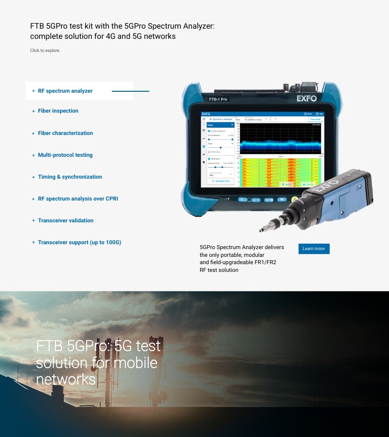 FTB 5GPro test kit with the 5GPro Spectrum Analyzer: complete solution for 4G and 5G networks