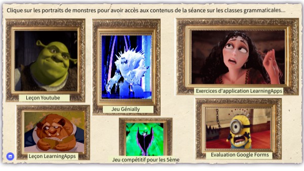 Clique sur les portraits de monstres pour avoir accès aux contenus de la séance sur les classes grammaticales...