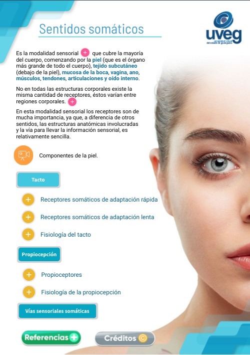 Es la modalidad sensorial que cubre la mayoría del cuerpo, comenzando por la piel (que es el órgano más grande de todo el cuerpo), tejido subcutáneo (debajo de la piel), mucosa de la boca, vagina, ano, músculos, tendones, articulaciones y oído interno.