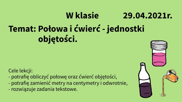 Temat: Połowa i ćwierć - jednostki objętości.