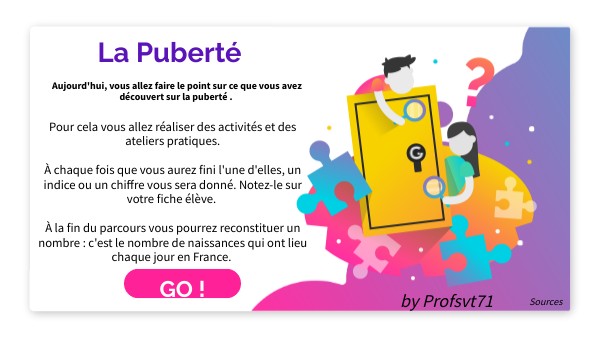 Pour cela vous allez réaliser des activités et des ateliers pratiques. À chaque fois que vous aurez fini l'une d'elles, un indice ou un chiffre vous sera donné. Notez-le sur votre fiche élève. À la fin du parcours vous pourrez reconstituer un nombre : c'est le nombre de naissances qui ont lieu chaque jour en France.