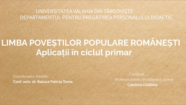 LIMBA POVEȘTILOR POPULARE ROMÂNEȘTI Aplicații în ciclul primar