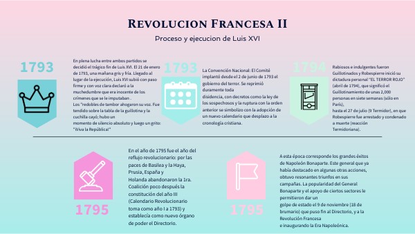 La Convención Nacional: El Comité implantó desde el 2 de junio de 1793 el gobierno del terror. Se reprimió duramente toda disidencia, con decretos como la ley de los sospechosos y la ruptura con la orden anterior se simbolizo con la adopción de un nuevo calendario que desplazo a la cronología cristiana.