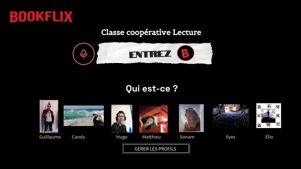Un Bookflix, le détournement pédagogique pour développer le goût et les compétences du sujet lecteur. Réunis en classe coopérative, l'appropriation des textes passent par la coopération. Proposée par Laïla Methnani, Professeure de Lettres, IAN Lettres et formatrice-CMAI, Académie de Grenoble