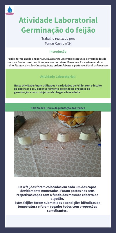 Neste trabalho pretendeu-se demostrar o percurso de vida de quatro variedades de feijão e demostrar o seu percurso de vida, sendo como objetivo final chegar com os 4 á fase adulta