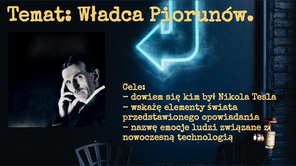 Cele: - dowiem się kim był Nikola Tesla - wskażę elementy świata przedstawionego opowiadania - nazwę emocje ludzi związane z nowoczesną technologią