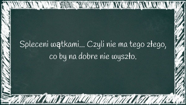 Spleceni wątkami... Czyli nie ma tego złego, co by na dobre nie wyszło.