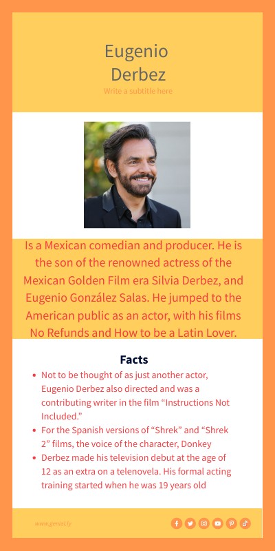 - Not to be thought of as just another actor, Eugenio Derbez also directed and was a contributing writer in the film “Instructions Not Included.”