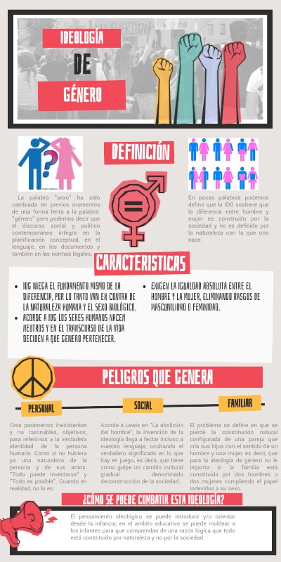 El problema se define en que se pierde la constitución natural configurada de una pareja que cría sus hijos con el sentido de un hombre y una mujer, es decir, que para la ideología de género no le importa si la familia está constituída por dos hombres o dos mujeres cumpliendo el papel indevidos a su sexo.