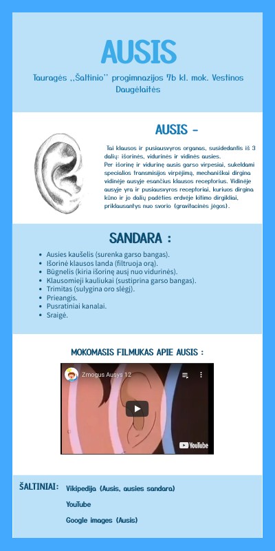 Vikipedija (Ausis, ausies sandara) YouTube Google images (Ausis)