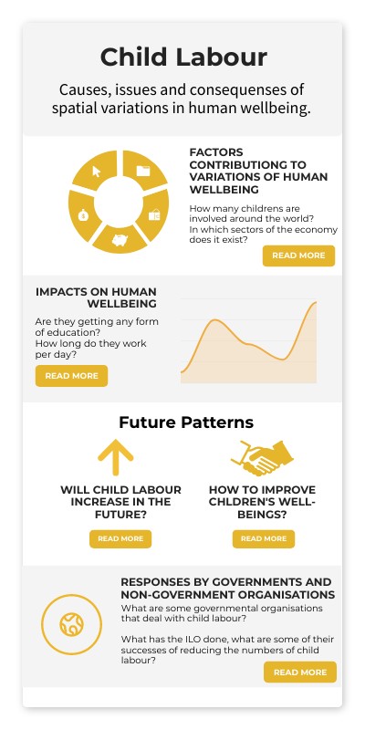 With the way that child labour is destroying many childrens well-being, there are some long term effects on the body from the work that they do regulary, the long term effect on children that work in factories could suffer from a rapid skeletal growth, greater risk of hearing loss, higher chemical absorption rates and lower heat tolerance. For metal workers you could experience many accidents due to the lack of experience and labour-intensive jobs may be risky. The long term effects on agricultural child labour are the exposure to pesticides, working with machinery and sharp tools and the lack of clean water, facilities and toilets. The four most basic ways to support their child’s well-being is to consider the child as a whole, prioritize their social and emotional learning, confront bias (clear about their beliefs, feelings and attitudes about others) and invest in mental and health consultation.