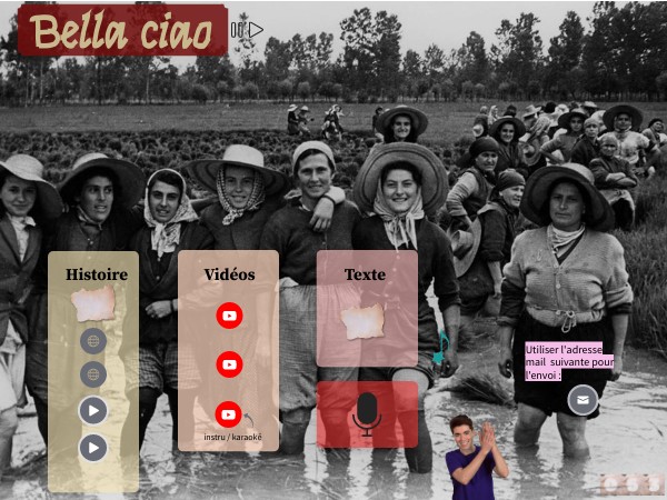 Bella ciao est un chant de révolte italien qui célèbre l'engagement dans le combat mené par les partisans, résistants pendant la Seconde Guerre mondiale opposés aux troupes allemandes alliées de la République sociale italienne fasciste, dans le cadre de la guerre civile italienne. Les paroles ont été écrites fin 1944 sur la musique d'une chanson populaire que chantaient au début du xxe siècle les mondine, ces saisonnières qui désherbaient les rizières de la plaine du Pô et repiquaient le riz, pour dénoncer leurs conditions de travail. Ce chant est devenu un hymne à la résistance dans le monde entier.