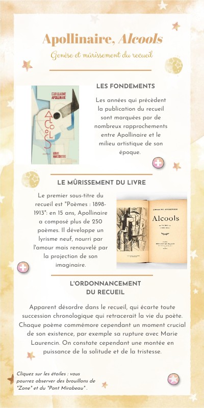 Cliquez sur les étoiles : vous pourrez observer des brouillons de "Zone" et du "Pont Mirabeau" .