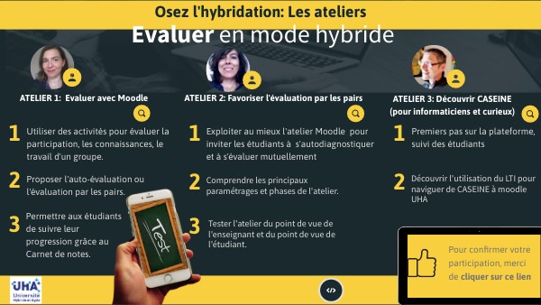 Tester l'atelier du point de vue de l'enseignant et du point de vue de l'étudiant.