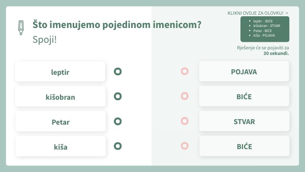 Što imenujemo pojedinom imenicom? Spoji!