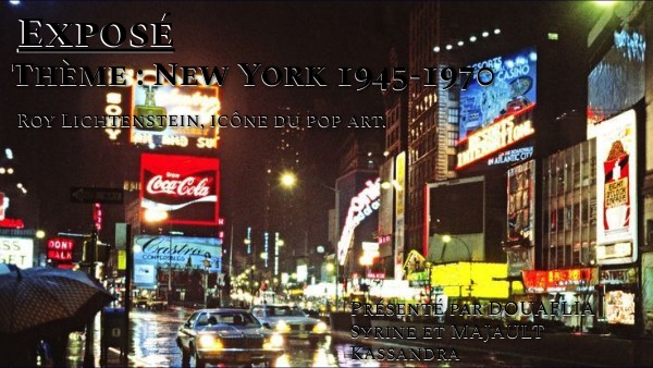 Nous pensons que les oeuvres de Roy Lichtenstein sont très plaisantes visuellement, elles critiquent avec humour certains aspects de la société tout en respectant les codes du pop art et avec sa propre signature. Nous avons choisi son tableau "M-Maybe" justement pour sa signification et son style bande dessinée qui nous a beaucoup plu. Et nous sommes totalement d'accord avec ce que dénonce l'artiste, les femmes étaient vues comme des poupées, belles, et complètemment vides à l'intérieur. De plus, l'idée de suggérer des histoires avec seulement une case qui permet à l'observateur de s'imaginer la suite est très intéressant. Nous avons imaginé que l'homme qu'elle attendait était son mari/amant mais on aurait aussi bien pu imaginer qu'il s'agissait d'un photographe ou autre. En contemplant cette oeuvre, nous sommes totalement libre de son histoire et c'est ce qui fait son originalité.