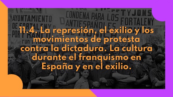 11.4. La represión, el exilio y los movimientos de protesta contra la dictadura. La cultura durante el franquismo en España y en el exilio.