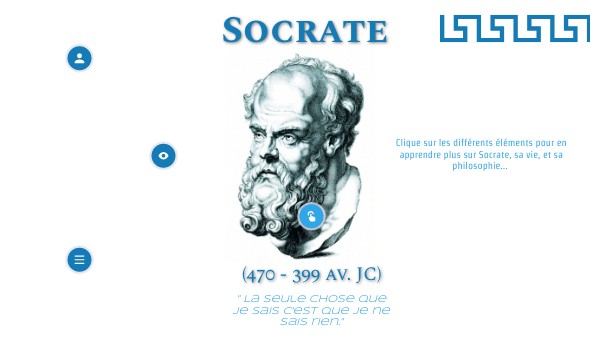 Clique sur les différents éléments pour en apprendre plus sur Socrate, sa vie, et sa philosophie...