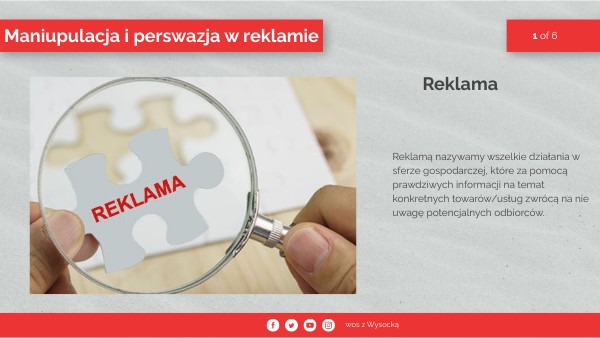 Reklamą nazywamy wszelkie działania w sferze gospodarczej, które za pomocą prawdziwych informacji na temat konkretnych towarów/usług zwrócą na nie uwagę potencjalnych odbiorców.