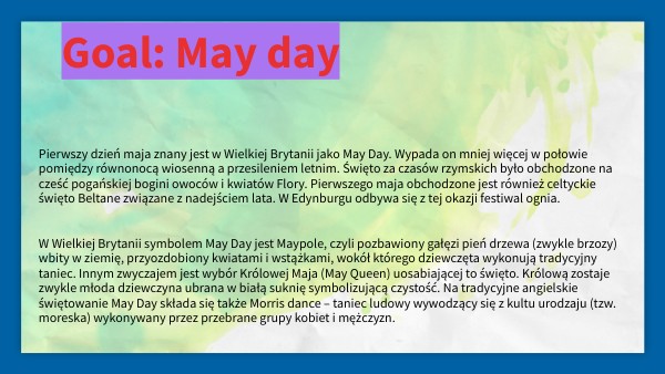Goal: May day