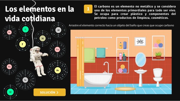 A continuación, en este juego vas a clasificar los diversos elementos de la tabla periodica con diversos escenarios de la vida cotidiana. ¡Diviertete y aprende!