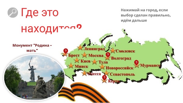 Нажимай на город, если выбор сделан правильно, идём дальше