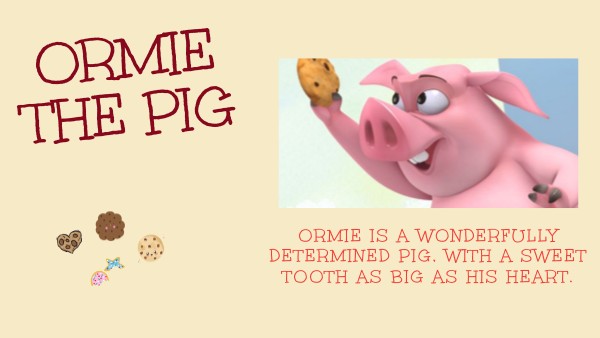 oRMIE IS A WONDERfULLY DETERMINED PIG, WITH A SWEET TOOTH AS BIG AS HIS HEART.