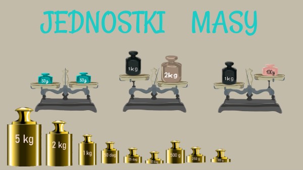 Przedmioty różnią się masą, czyli ciężarem. Do jej mierzenia służy waga. Znasz już takie jednostki masy jak: gram, dekagram, kilogram, tona.