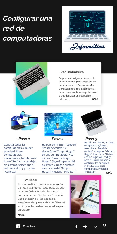 Se puede configurar una red de computadoras para un grupo de computadoras Windows o Mac; Configurar una red inalámbrica para unas cuantas computadoras, o puedes usar una conexión cableada