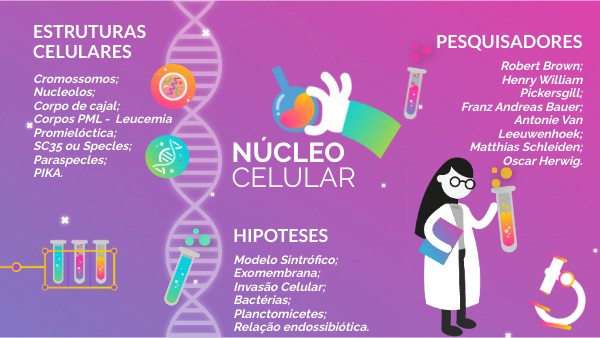 Cromossomos;Nucleolos; Corpo de cajal; Corpos PML - Leucemia Promielóctica; SC35 ou Specles; Paraspecles; PIKA.
