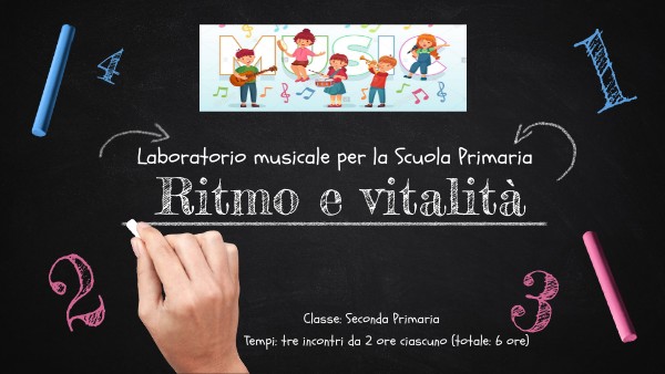 Nella seconda fase del laboratorio musicale, agli alunni verrà fatto ascoltare un brano/filastrocca alla LIM, dal titolo "Attenzione! Concentrazione! Ritmo! Velocità!". In seguito, l'insegnante reciterà la filastrocca assieme a dei movimenti e che richiederà contemporaneamente tutte e quattro le abilità citate. Poi, si riuniranno i bambini in cerchio, in piedi o seduti e si decideranno insieme dei movimenti da associarealle quattro parole. Ad esempio: Attenzione: pollice destro sulla spalla destra, pollice sinistro sulla spalla sinistra (ripetuto 2 volte) Concentrazione: si battono i piedi 2 volte Ritmo: si battono le mani 2 volte Velocità: prima pollice destro spalla destra, poi pollice sinistro spalla sinistra. Il primo bambino che dà il via al giro, sostituisce con il proprio nome le 4 parole sopracitate (per ogni parola il nome si ripete due volte). Sostituendo il “Ritmo”, però, dovrà cantare una volta il suo nome e una volta il nome di un altro bambino che lo sostituirà nel giro. La filastrocca andrà avanti finché tutti, almeno una volta, avranno partecipato. Il resto del gruppo, mentre è il turno di un bambino, batterà le mani a tempo. La velocità sarà decisa dai partecipanti.
