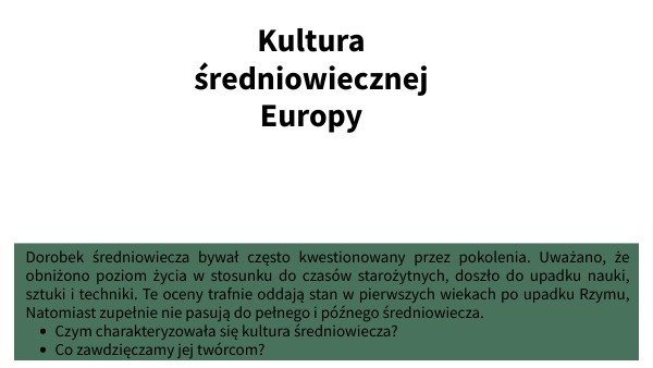Klasa I 6.7. Kultura średniowiecznej Europy