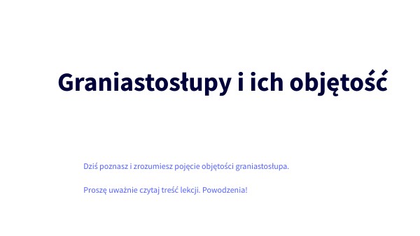 Dziś poznasz i zrozumiesz pojęcie objętości graniastosłupa.Proszę uważnie czytaj treść lekcji. Powodzenia!