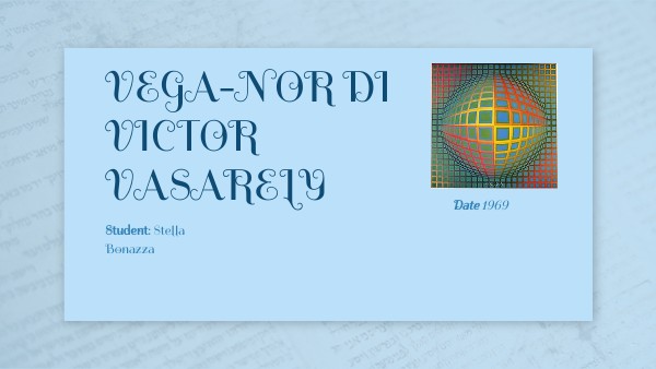 Victor Vasarely fu un esponente dell’Optical Art, movimento artistico che mise al centro del lavoro creativo la ricerca sulla percezione visiva. Gli artisti che vi aderirono crearono opere illusionistiche elaborate in seguito ad un attento studio dei fenomeni percettivi. Vega Pal di Victor Vasarely crea una forte illusione di tridimensionalità e un apparente movimento. Al centro del dipinto, infatti, la superficie sembra gonfiarsi e proiettarsi nello spazio, verso l’osservatore. Il dipinto è astratto, non vi sono immagini figurative se non la serie di cerchi colorati che coprono ordinatamente la sua superficie.