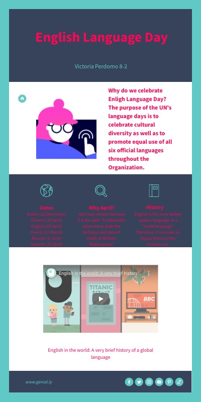 Why do we celebrate Enligh Language Day?The purpose of the UN's language days is to celebrate cultural diversity as well as to promote equal use of all six official languages throughout the Organization.