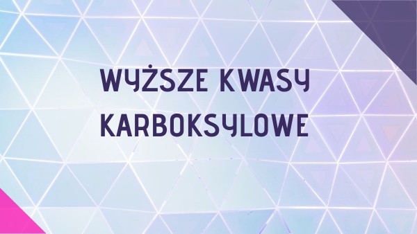 co oznacza nazwa wyższe kwasy karboksylowe; nazywać wyższe kwasy karboksylowe nasycone (kwas palmitynowy i stearynowy) oraz nienasycone (kwas oleinowy); zapisywać wzory wyższych kwasów karboksylowych (kwasu palmitynowego, stearynowego i oleinowego); jakie są właściwości wyższych kwasów karboksylowych; jakie zastosowanie mają wyższe kwasy karboksylowe; projektować doświadczenie pozwalające odróżnić kwas oleinowy od palmitynowego lub stearynowego.