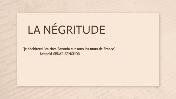 Au départ un mot ... qui devient un concept.= un courant littéraire et politique qui rassemble des écrivains noirs francophones pour revendiquer l'identité noire et sa culture. --> Aimé Césaire, Léopold Sédar Senghor, Léon-Gontran Damas, Guy Tirolien, Birago Diop et René Depestre. --> Des intellectuels français se montrent solidaires comme Jean-Paul Sartre (1905-1980) pour qui la négritude est "la négation de la négation de l'homme noir". --> Le concept de négritude, a une vocation universelle, dénonce le colonialisme et la domination occidentale. La première négritude s’est exprimée surtout dans la poésie — les fondateurs du mouvement publiaient des recueils individuels ainsi que des anthologies, dont la plus célèbre est l’Anthologie de la nouvelle poésie nègre et malgache de langue française, préparée par Senghor, éditée en 1948 avec la préface de Jean-Paul Sartre.