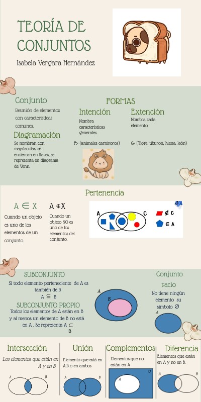 Se nombran con mayúsculas, se encierran en llaves, se representa en diagrama de Venn.