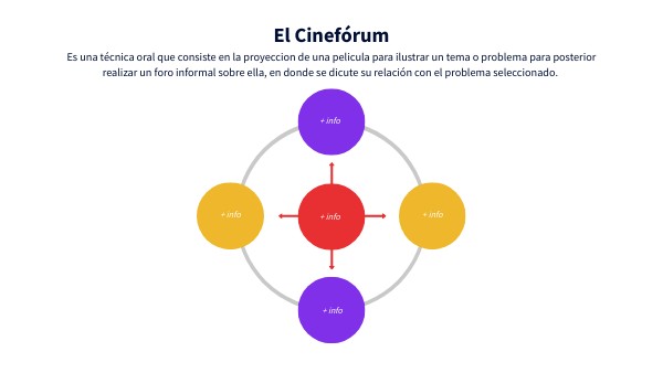 Es una técnica oral que consiste en la proyeccion de una pelicula para ilustrar un tema o problema para posterior realizar un foro informal sobre ella, en donde se dicute su relación con el problema seleccionado.