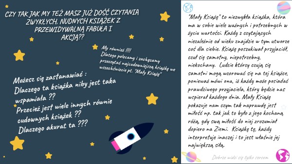 My również !!!! Dlatego polecamy i zachęcamy przeczytać najcudowniejszą książkę we wszechświecie pt. "Mały Książę"