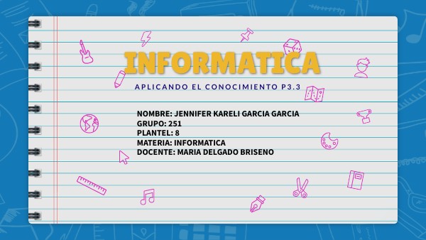 NOMBRE: JENNIFER KARELI GARCIA GARCIA GRUPO: 251 PLANTEL: 8 MATERIA: INFORMATICA DOCENTE: MARIA DELGADO BRISENO