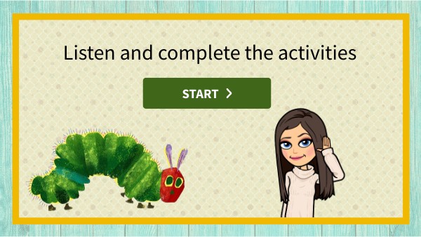 Now drag the correct number of fruits to the caterpillar and write the number of each fruit in the boxes.