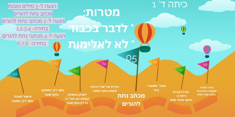 הגעה ל-5 מילים טובות מכתב נחת להוריםהגעה ל-2 מכתבי נחת להורים בחירה- 1,2,3,4 הגעה ל-4 מכתבי נחת להורים בחירה- 6,7,8
